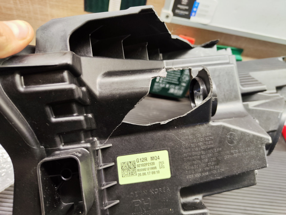 Что не скажешь о корпусе фары где были сильные повреждения и потеряны фрагменты фары.